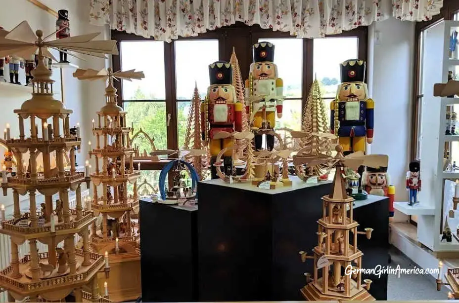 The Richard Glasser workshop offers a peek at the work floor. For just a few Euros, you can go upstairs and see craftspeople working on beautiful decorations by hand, carefully painting, sanding, carving, and gluing. Local men and women still work hard in the workshops. It’s fascinating and a bit overwhelming to see the sheer number of pieces that they work with. But seeing real people assembling and painting nutcrackers and pyramids by hand puts into perspective just how special these pieces are. Nutcrackers made by machine aren’t the same.