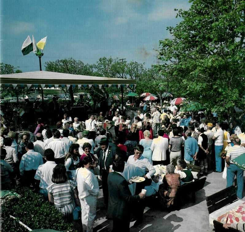 By 1964, the Club bought a 4.2-acre plot of land on Douglas Rd. in Anaheim, and a few months later, they broke ground on the first 17,000-square-foot clubhouse. Volunteers did 80% of the labor! The Hall had seating for 600, with room for another 150 on the balcony. There was a 90-seat restaurant with a traditional German menu and an outdoor Biergarten.