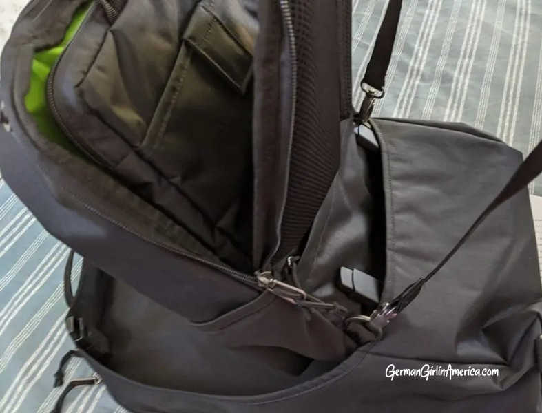 - The “day pack” has a secret zipped compartment that rests against the small of your back. Perfect for securing extra cash. Unless you know to look for it, you can’t even see it’s there.