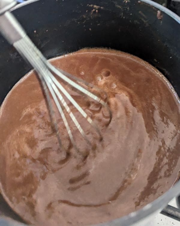 - With the mixer going, add half of the flour mixture, and then half of the cooled chocolate beer mixture. Beat until smoothAdd the rest of the the flour mixture and beer mixture, beat until smooth.