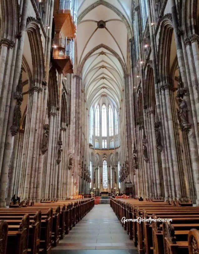 I’ve visited the Cologne Cathedral in Germany many times and explored from the basement Treasury to the top of the Bell Tower. Still, my visit for the German National Tourist Board was the first time I’ve ever crawled around on the floor. Most people, me included, walk into the immense Dom and look UP. You can’t help it. This is a massive space, and so much is above eye level. It’s impossible to take everything in at once, so you find yourself staring in awe. My guide, Parthena Trellopoulou-Pauli, encouraged me to look beyond the greatness… to see the DETAILS… that make the Kölner Dom a real treasure. Let me share some of those fantastic treasures with you and show you WHY you need to visit the Cologne Cathedral and why you might want to crawl around on the floor, too.