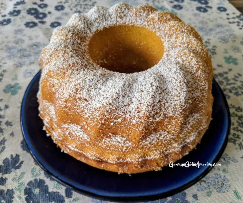 - Top with a Zuckerguß (Simple glaze) - Combine 1 cup powdered sugar, a few teaspoons Eierlikör and a tablespoon of milk. Stir until smooth. It should be thick, but still flow. Pour over the cake.