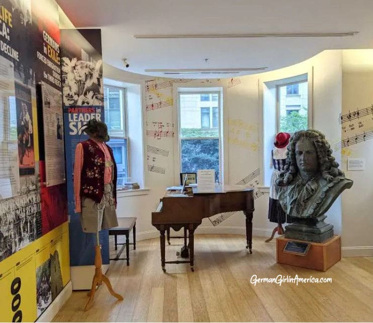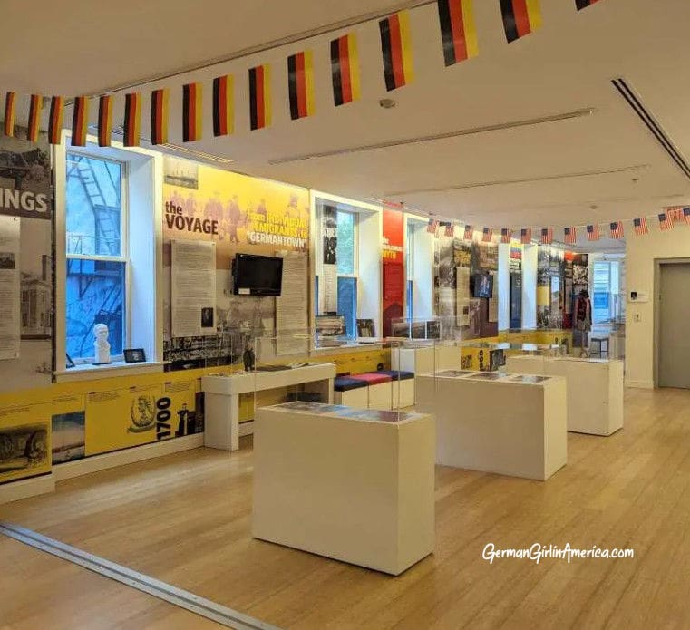 Exhibits fill the walls of the bright room on the second floor. They tell the story of Germans in America, the early immigrants, how they lived, and why they came. The timeline takes visitors through the early years of America and the soldiers who fought on both sides of the Revolutionary War (and the famous Muhlenberg legend). You’ll learn the importance of the 48ers and what it was like to be a German in America during the World Wars.