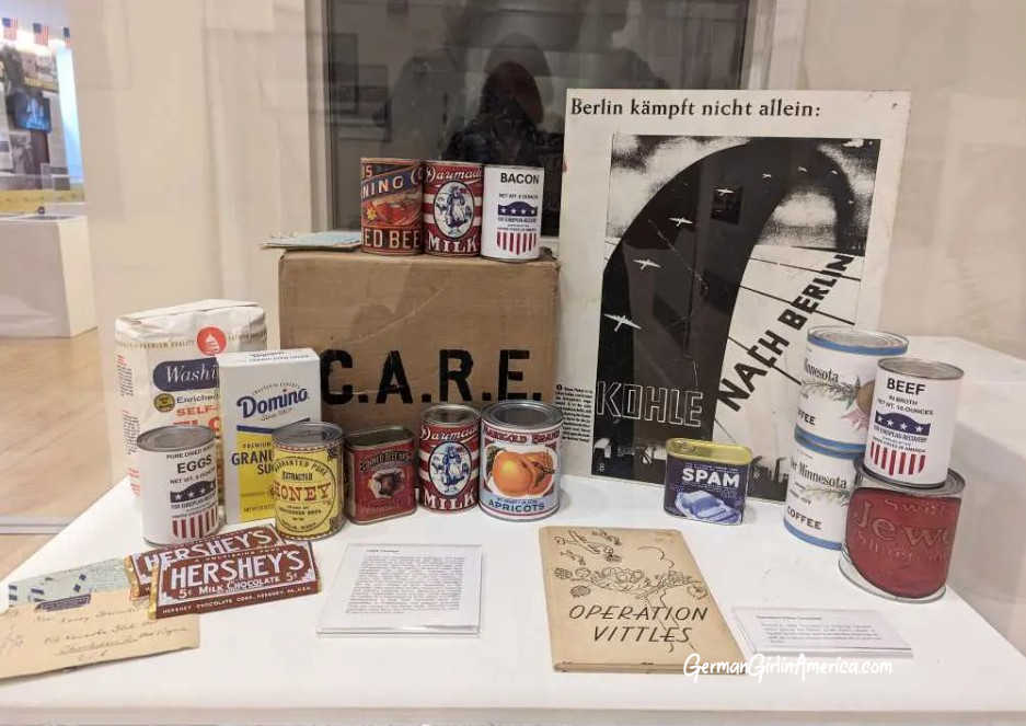 A significant portion of the exhibit space is dedicated to temporary exhibits that change several times a year. Past exhibits at the German American Heritage Museum include such incredibly diverse topics as “100 Years of Hollywood – “The Laemmle Effect,” “Remember the Ladies: German-Americans and the Woman Suffrage Movement,” and “From the Black Forest to the California Desert: The Life and Work of Fritz Faiss.” Other exhibits include Toymaking, German Food, and German Clubs. The current exhibit, “75th Anniversary of the Berlin Airlift – How the U.S. and Royal Air Forces Saved Berlin’s Blockaded Residents,” tells the story of the Airlift and includes some of the items carried by Operation Vittles.