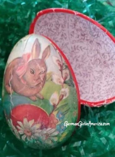 Luckily, you can still find German paper mache Easter Eggs for your Treats, new and Vintage, and in loads of different sizes.