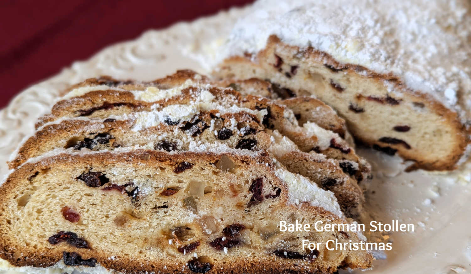 You’ll find Stollen on most German tables during the Christmas Season. People enjoy it at an Advent Coffee, or as a special part of the Christmas Breakfast. The flavorful bread, studded with fruit, is made with enriched dough. Because it’s sweet, but not too sweet, you can enjoy it just as it comes. The most famous Stollen comes from Dresden, where it’s practically an art form. This German Stollen recipe comes from my Tante, who, after a bit of poking, finally shared her recipe with me.
