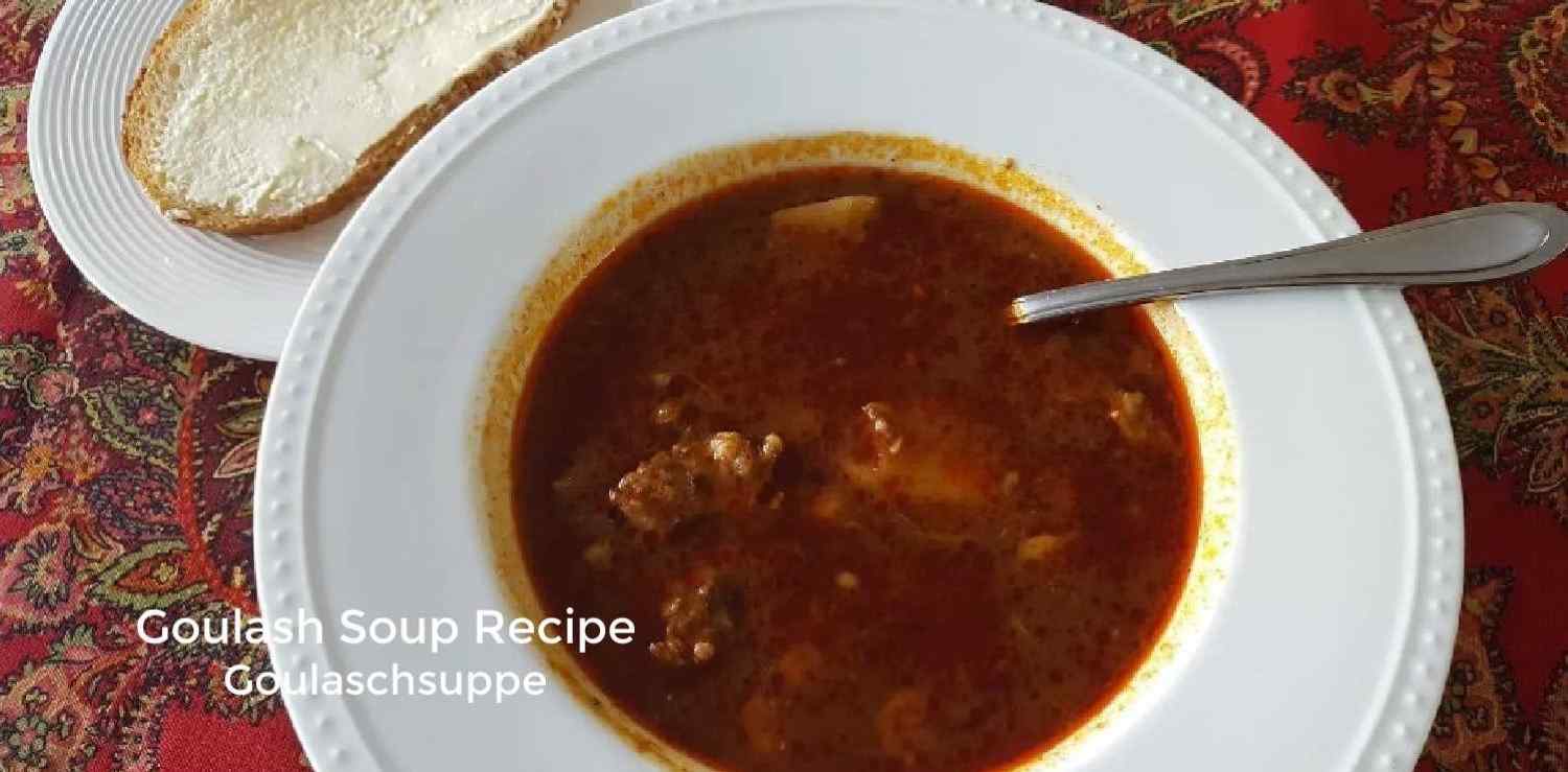My mom used to make this authentic German Goulash Soup Recipe in Winter when things cooled off. Her savory soup is perfect with a slice of rye bread and butter. It’s not as thick and hearty as regular Goulash but warms you to your bones.