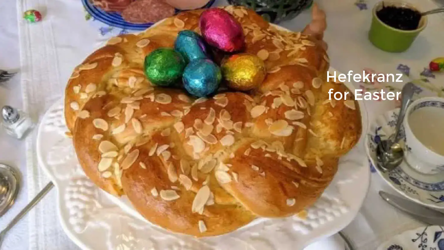 At Easter, you can shape this recipe into a braided wreath to fill with colored eggs, foil-wrapped chocolate eggs, or even bake hard-cooked colored eggs into the braids. (That will be something for me to try next.) A Hefezopf wreath makes a beautiful centerpiece on the Easter Breakfast table.