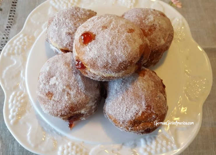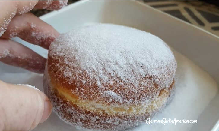 Why are Berliner / Pfannekuchen / Krapfen made during Karneval Season? Karneval is a time of exuberance before Lent’s austerity. Believers are supposed to give up tasty things like fried foods for those 40 days before Easter. So, be sure to eat all the Berliner you can BEFORE midnight on Karneval Dienstag! (Shrove Tuesday).