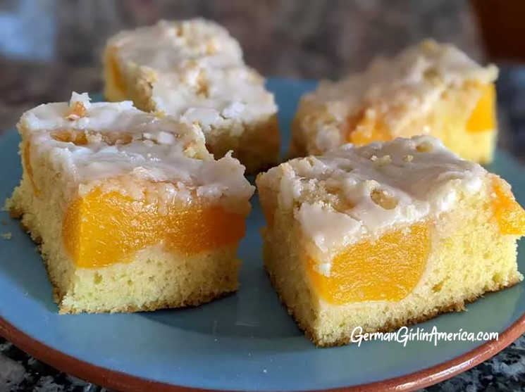 Pfirsichschnitten- Peach Streusel Cake Squares