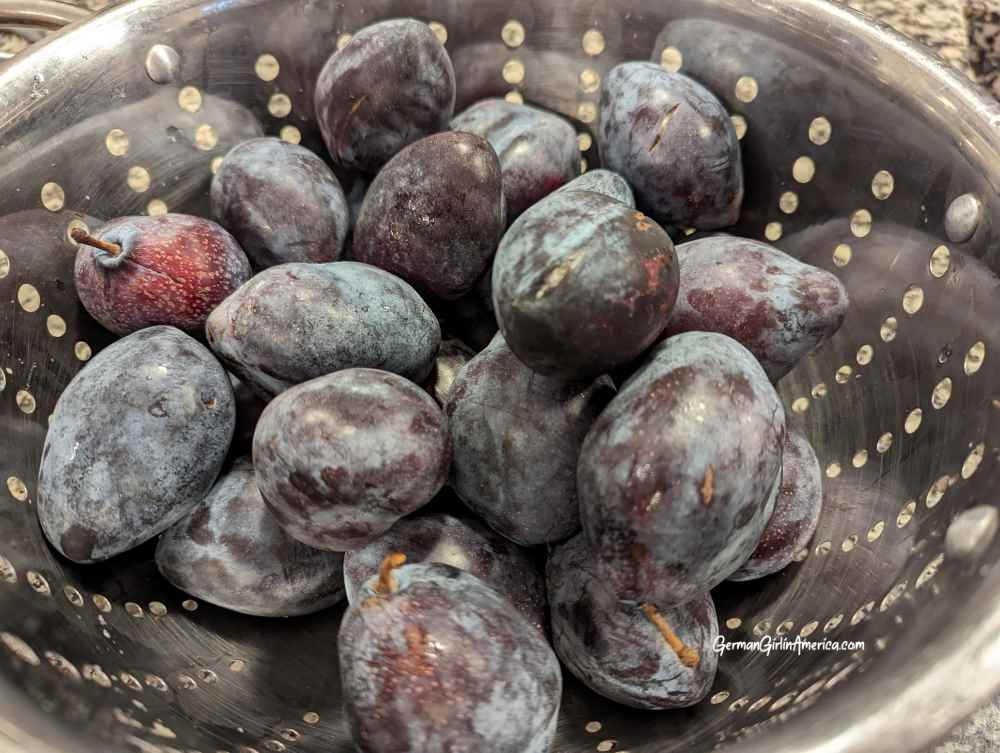 For this batch I used Italian Prune Plums, the same ones that are normally used in a traditional Pflaumenkuchen (Plum Cake). And yes, I know that finding these special plums in American Grocery Stores or Farmer’s Markets can be difficult. So go ahead and use any firm plums.
