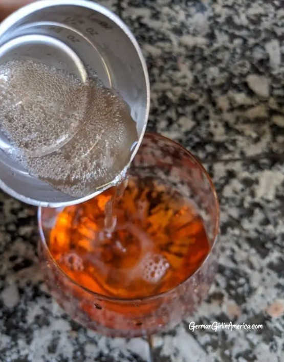 - Add the Prosecco, Aperol and Sparkling water
