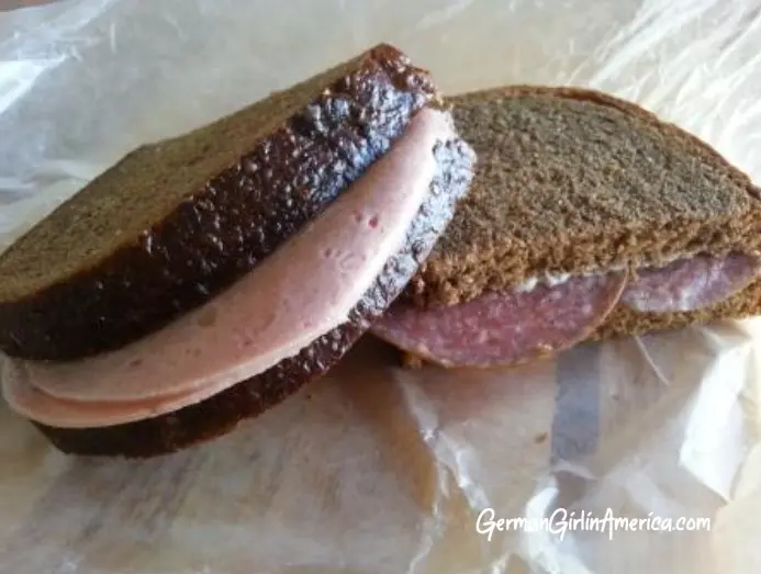 I had Lyoner wurst on rye bread, never white bread!