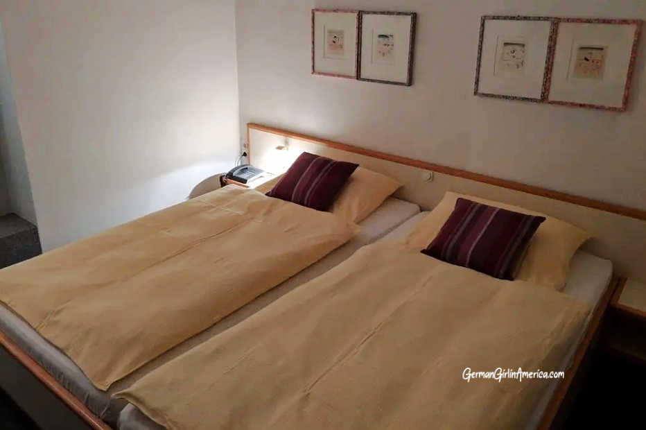 In Germany, it is customary for each person to get their own blanket or feather bed. You won’t have a giant quilt or bedspread to cover you and your other person. Don’t worry; you will get used to not having to share. (Read more tips about hotels here–> German Hotel Tips)