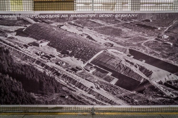 The Welfenkaserne is a barracks of the Bundeswehr in Landsberg on the Lech in the state of Bavaria. In the barracks there is an underground facility (UTA), which had to be erected by concentration camp prisoners at the end of the Second World War . It now houses the repair center 13 and parts of the Bundeswehr service center Landsberg am Lech. The area comes with a lot of history… it was a German bomber production plant in World War 2 that was built by prisoners from the neighboring concentration camp that housed Hungarian Jews. After the War, the camp housed German refugees that were being relocated the Eastern Countries. The American military even used the bunkers for a while in the 70s. Today, the buildings are used by the German Bundeswehr (Army), who have also created a memorial at the site to respect the past.