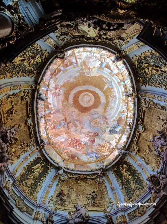 In the 8th century, the Benedictine order took over the space, began brewing beer in 1050, and consecrated a church on the site in 1191. (Interesting how the beer predated the church.) Then in 1713 when Abbot Maurus Bächl took over. A strong leader and organizer, he breathed new life into the order. And this is the exciting part: he brought in the painter Cosmas Damian Asam to update the simple rectangular church.
