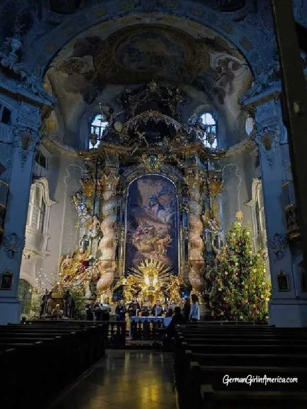 (Quick aside- Wondering who St Johann Nepomuk is and how he got a church dedicated to him a mere 4 years after his canonization? In 1393, John of Nepomuk stood up to King Wenceslaus IV of Bohemia, who was not the Wenceslaus in the song but rather one of his descendants. When John opposed allowing King Wenceslaus to upgrade an Abbey church and install his own guy as Bishop. So, King Wenceslaus subjected John to all types of torture and finally had him thrown off a bridge into the River Vltava, where he drowned. Five stars appeared in the heavens above the river, showing people how to find John’s body, which was completely shriveled, except for his tongue, making him eligible for sainthood. WHY did the Bavarians love Johann of Nepomuk so much? While alive, he was the chief confessor to Queen Sophie, Wenceslaus’s wife, and a member of the Wittelsbach family. King Wenceslaus IV tortured John for, among other things, not divulging who Sophie was having an alleged affair with. The Wittelsbach dynasty, who ruled Bavaria from 1110 to 1918, appreciated discretion. Today, Johann of Nepomuk is the patron saint of secrets and bridges, and you will find his statue on bridges all over Germany)