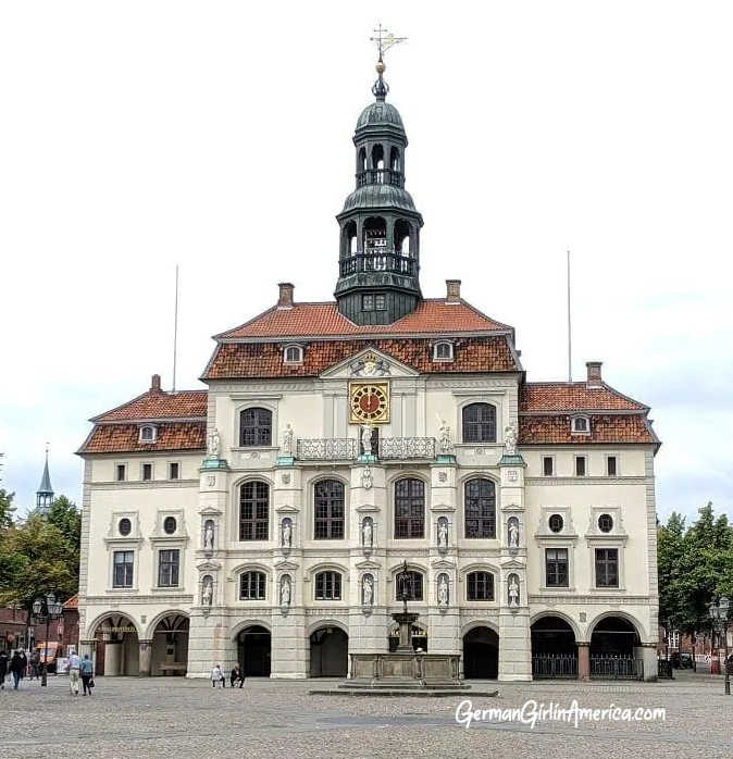The historic Rathaus (City Hall) dates back to the 1200s and is the largest Medieval City Hall in Northern Germany. War never damaged the building, so it’s incredibly well-preserved. Originally, it was Gothic brick, like most of the buildings in Lüneburg, but a storm in the early 1700s damaged the facade, so it was replaced with the current Baroque facade.