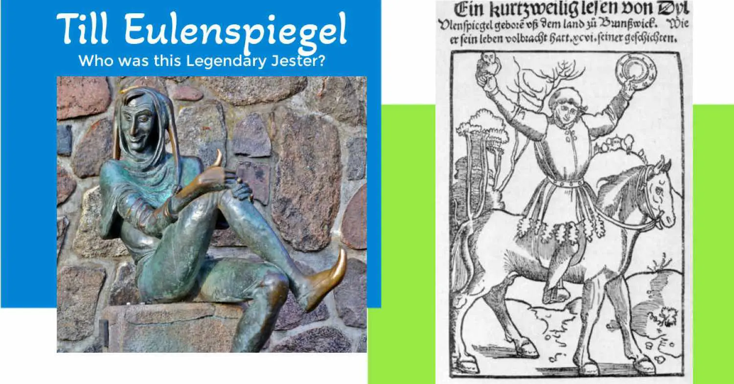 Of course, I do! The man in the jester hat is Till Eulenspiegel, a figure of German storytelling for over 700 years. But who was Till Eulenspiegel? A Jester, a prankster… someone who spoke truth to power. Over the years, the stories mellowed a bit and morphed into children’s tales (similar to the evolution of the Max and Moritz stories). But the core remains. Till Eulenspiegel and his pranks are woven into Germany’s culture.